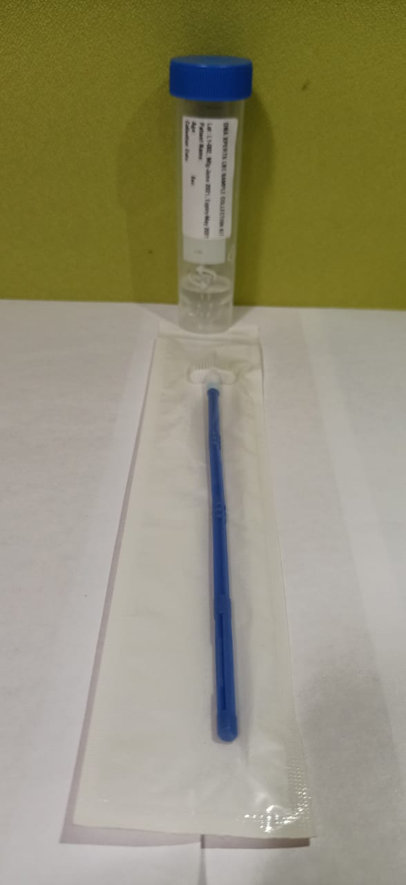 HPV DNA RT-PCR Sample Collection kit with 1 tube containing preservative & 1 cervical brush with detachable tip. The kit can be used for endocervical samples for LBC PAP testing and HPV DNA PCR Testing